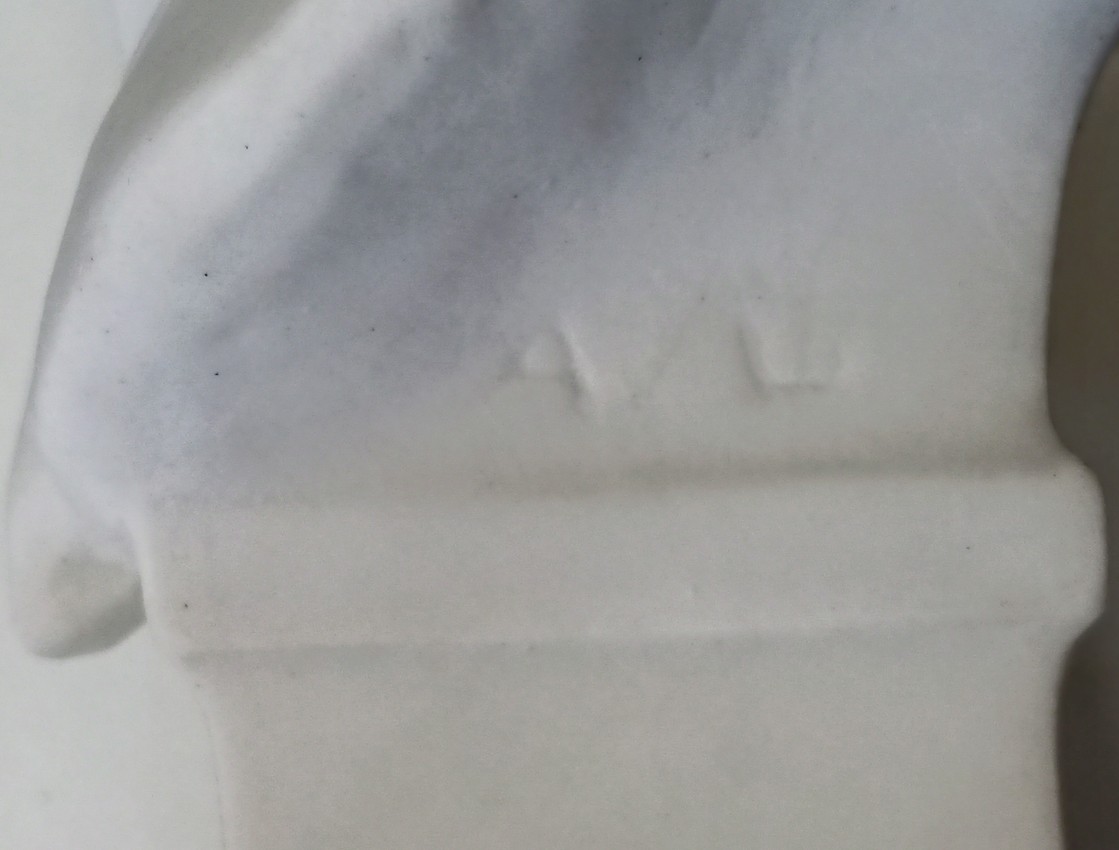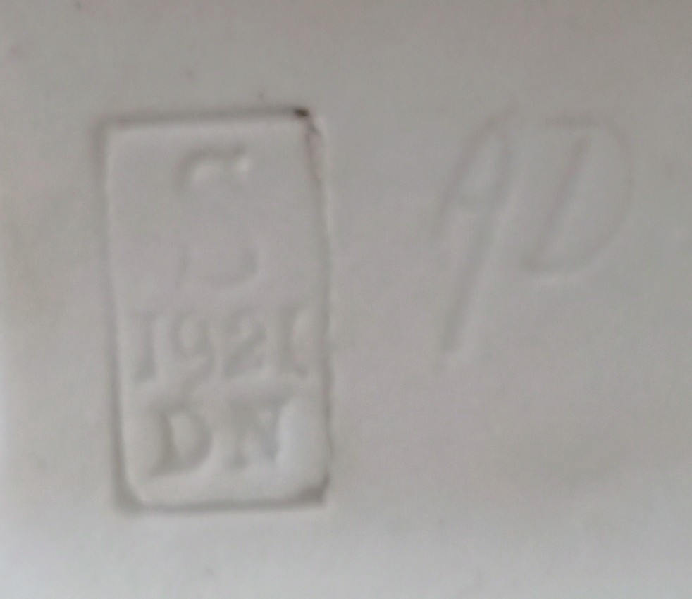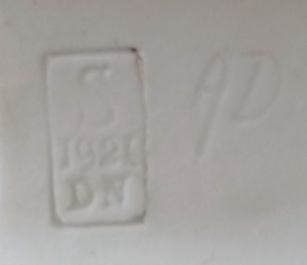 Biscuit signé « AL » et estampillé « S 1921 DN » dans un cartouche à côté de « AD«