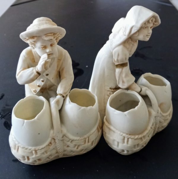 • Salière, poivrière, moutardier- Personnage Biscuit Porcelaine